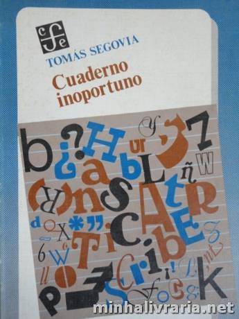 Idioma: Espanhol. Brochura, bom estado de conservação, capa e conteúdo íntegros, não há grifos ou anotações, 238 páginas. Este libro reúne los artículos que el poeta y ensayista publicó en un diario mexicano. Cuaderno Inoportuno es una punzante llamada de atención en defensa y elogio del oficio de escribir; defensa que basa su eficacia en la incesante postulación de problemas. Así, Segovia recorre las tierras de la linguística y la semiótica, buscando en lo complejo señales luminosas; indaga entre los derechos jurídicos que amparan al creador y de allí bosqueja un sistema común para signos y leyes; hace una disección del Homo seductor en que las máscaras del don Juan vuelven a desfilar frente a nosotros, como las relaciones íntimas y sospechosas entre la mujer y el poeta. E. 03.